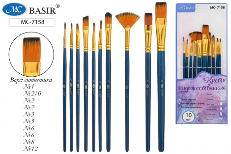 Набор кистей 10шт нейлон №1-12 круг, плоские, скош, линер MC-7158