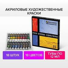 Краски акрил худож. Brauberg 18цв 12мл тубы 191123