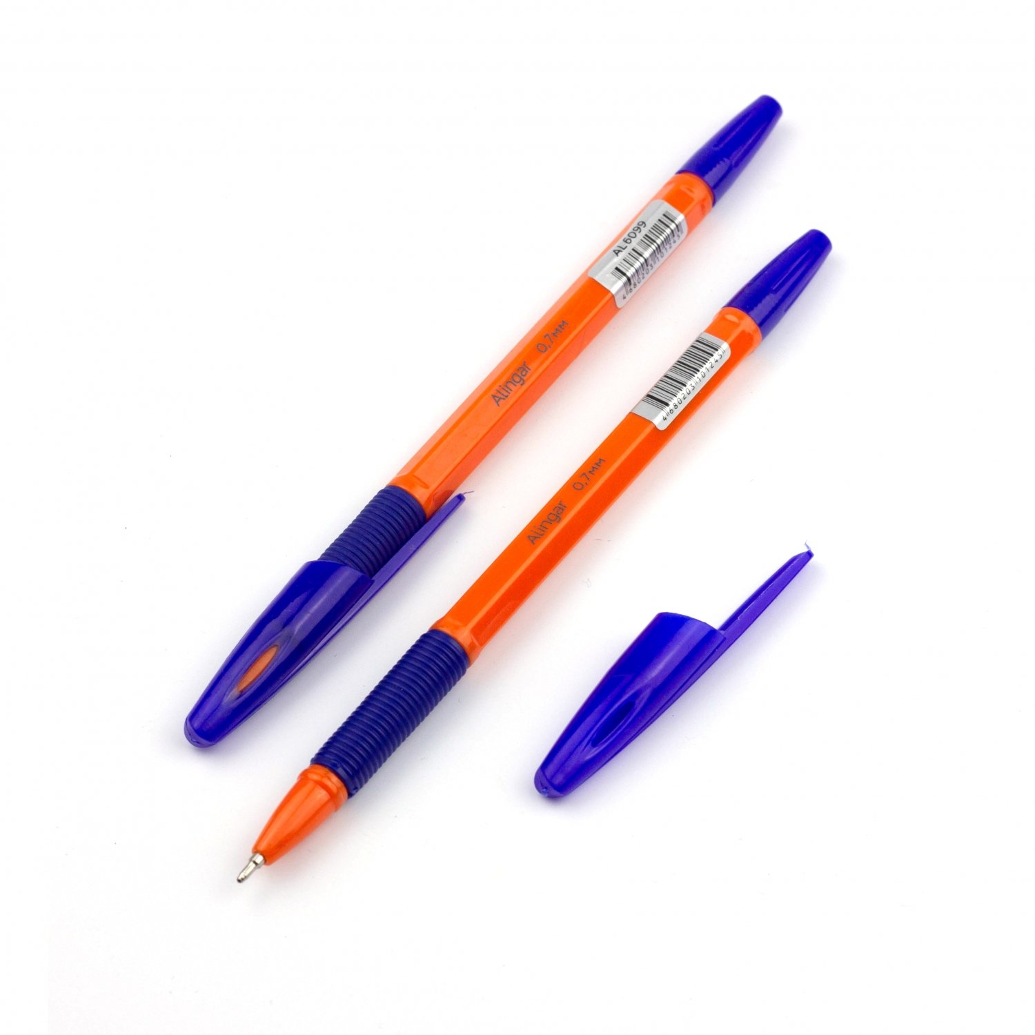 Масляная ручка Alingar 6099 оранж корпус резин грип синяя 1/48