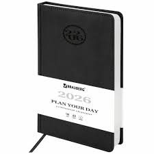 Ежедневник А5 2026г Brauberg Favorite кожзам черный 117037